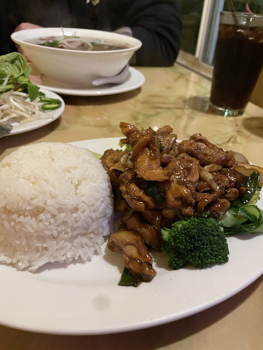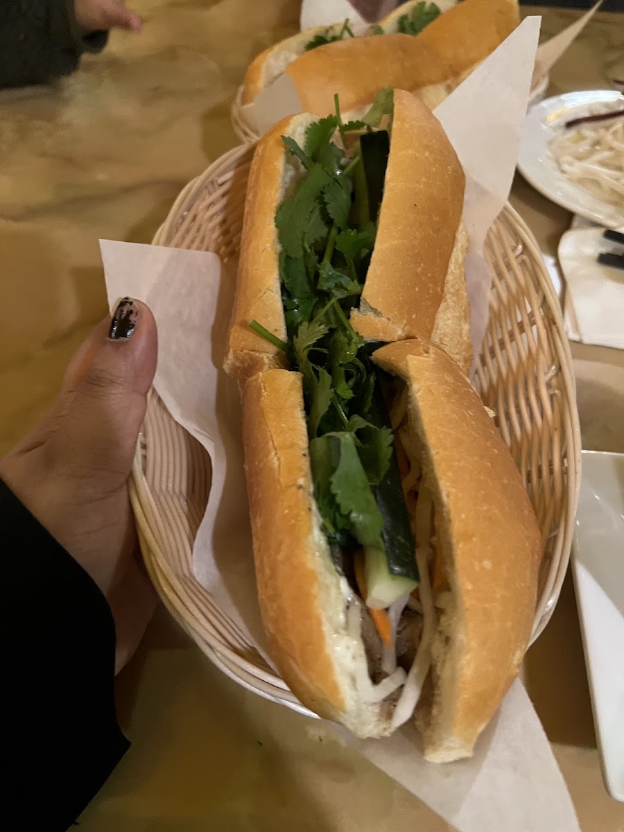 The pho was delicious! We enjoyed the beef brisket and tripe. The veggies were abundant. The broccoli and bok choy were fresh. The vegetarian banh mi was nicely balanced in flavor and was not at all dry. A delightful family restaurant!