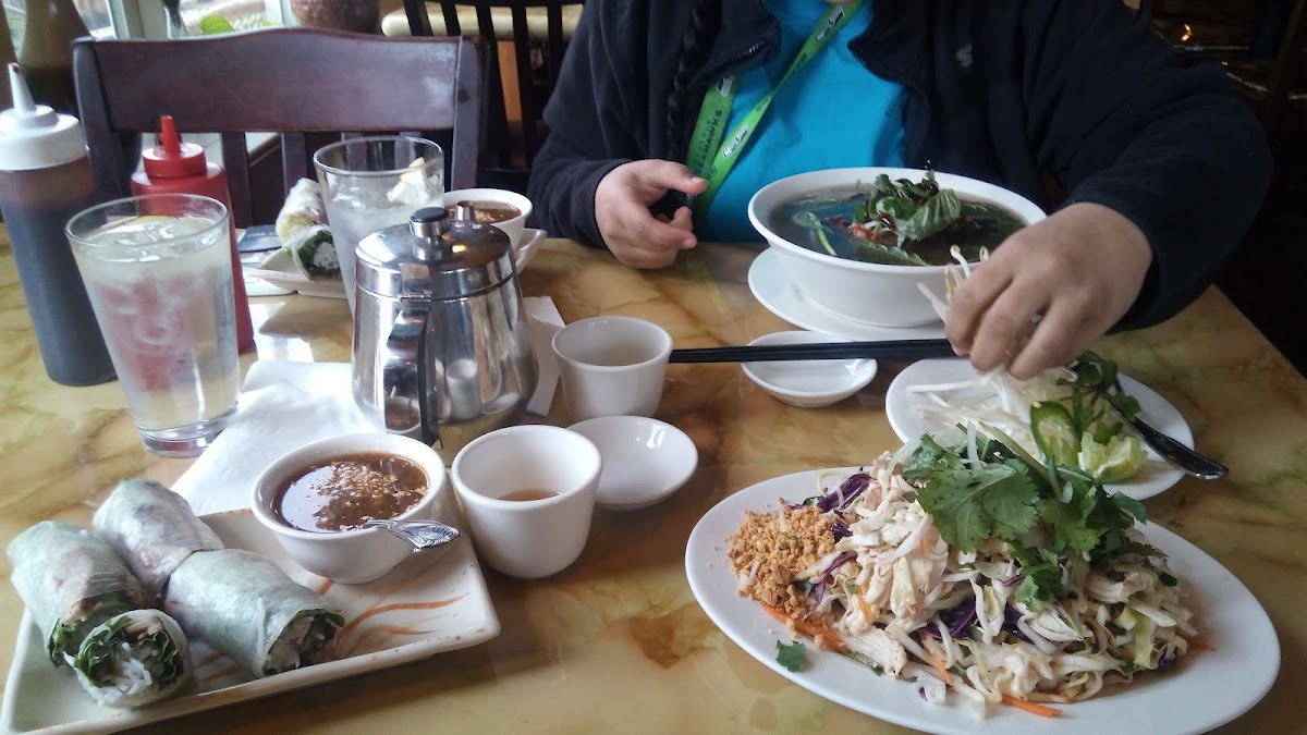 I love Vietnamese food on any occasion and find an excuse to try new places, gladly found this new gem in the Delridge way in West Seattle. There was adequate parking spots, outdoor seating and we were greeted warmly and seated right away. After a few mins water and menus were served then we ordered after sometime. The food was served fresh even we went there 45 mins before closing. Let me just say just go and enjoy any meal they make for the freshness, crunch and umami. We were so pleased with the service and our meal that we would be returning soon and the fair price range is the cherry on top!! Thanks Pho Aroma :)